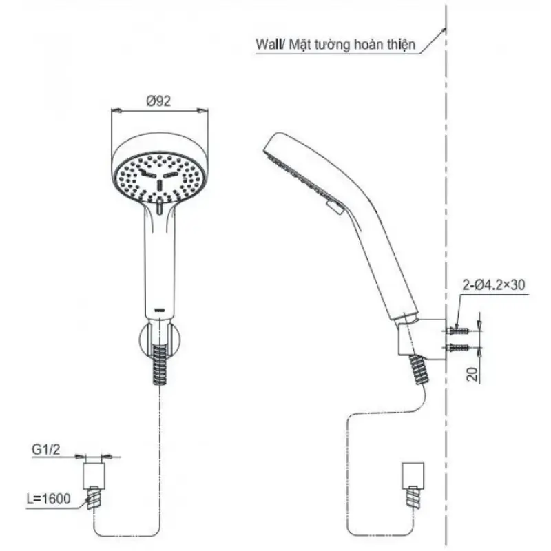 - Lắp đặt: Gắn tường.
