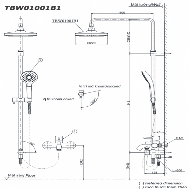 Thông Số Kỹ Thuật Chi Tiết Của Sen Cây Toto TBS03302V/TBW03002B/TBW01001BA: