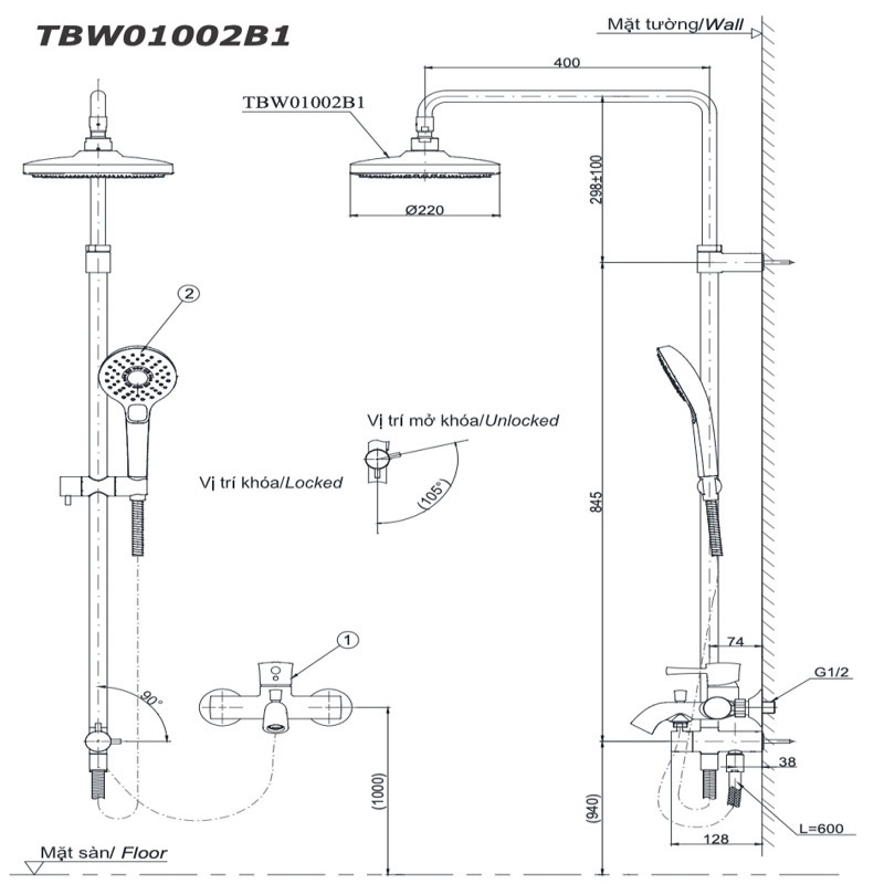 Thông Số Kỹ Thuật Chi Tiết Của Sen Cây Toto TBW01002BA/TBW07009A/TBG01302VA: