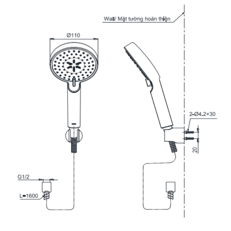 - Lắp đặt: Gắn tường.