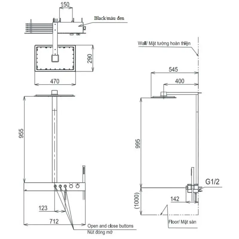 - Kích thước: (Xem chi tiết ở phần hướng dẫn lắp đặt)