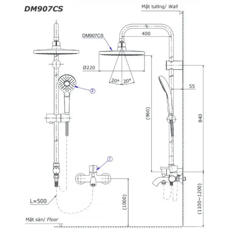 Thông Số Kỹ Thuật Chi Tiết Của Sen Tắm Cây Toto DM907CS/TBS04302V/DGH104ZR: