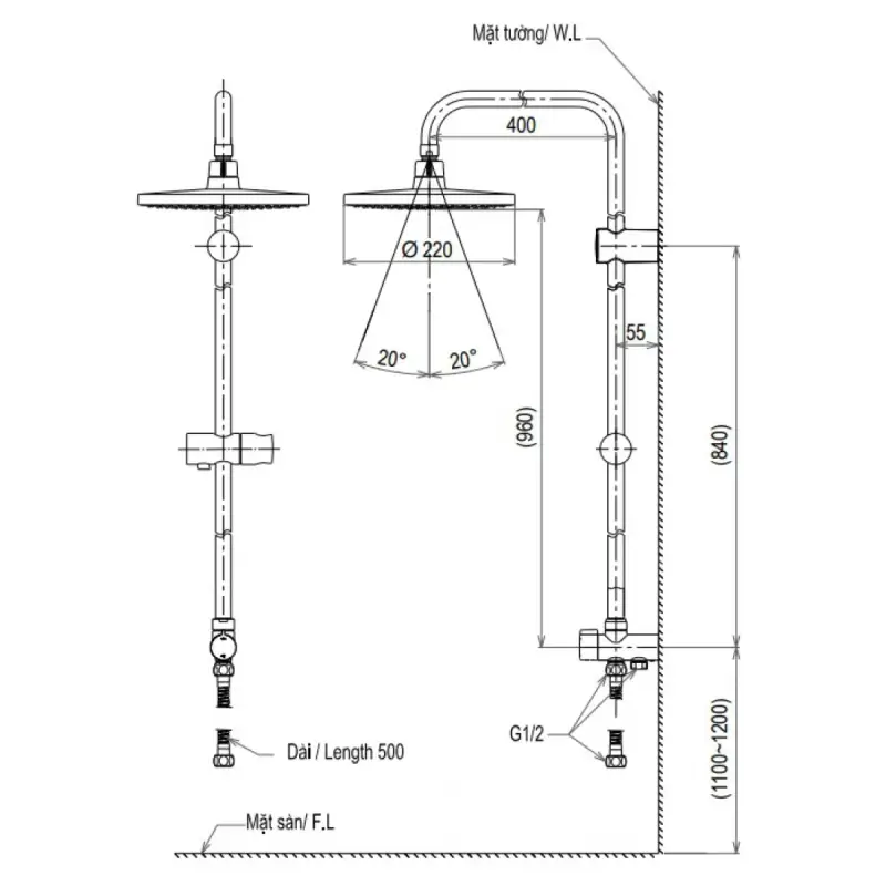 - Kích thước: (Xem chi tiết ở phần hướng dẫn lắp đặt)