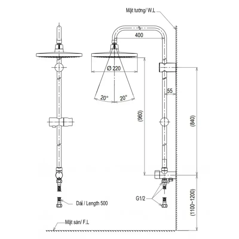 - Kích thước: (Xem chi tiết ở phần hướng dẫn lắp đặt)