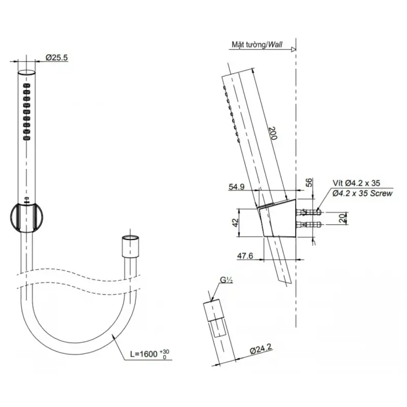 - Bao gồm gác sen, không bao gồm cút nối tường.