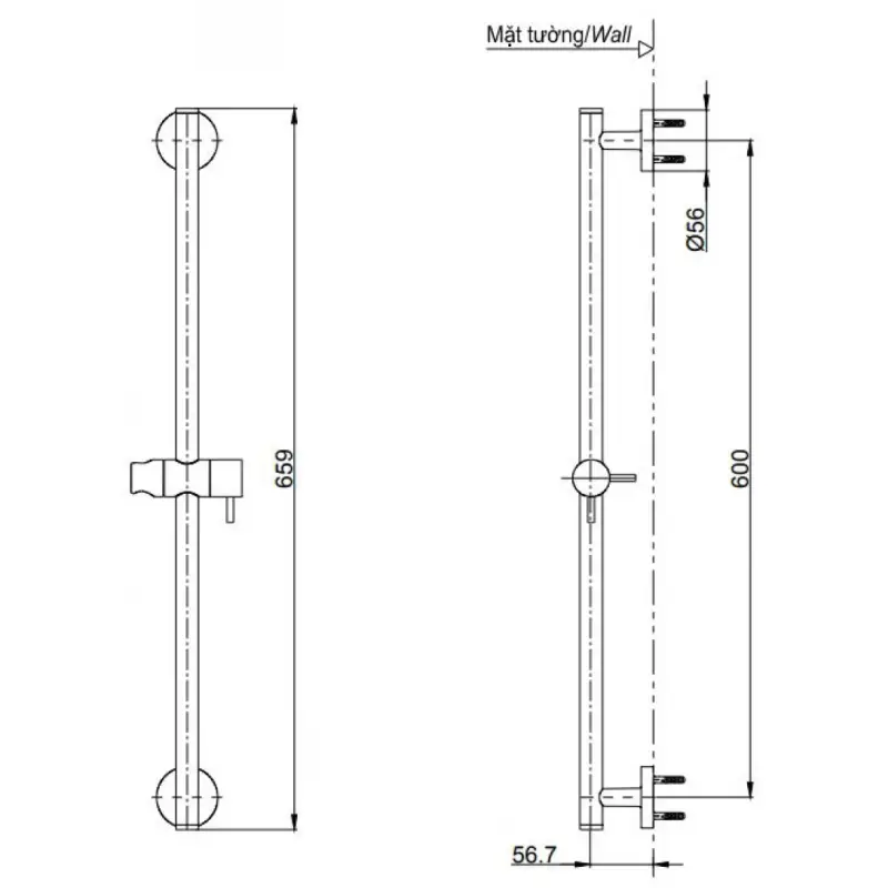 Thông Số Kỹ Thuật Chi Tiết Của Thanh Trượt Sen Tắm Toto TBW01016B: