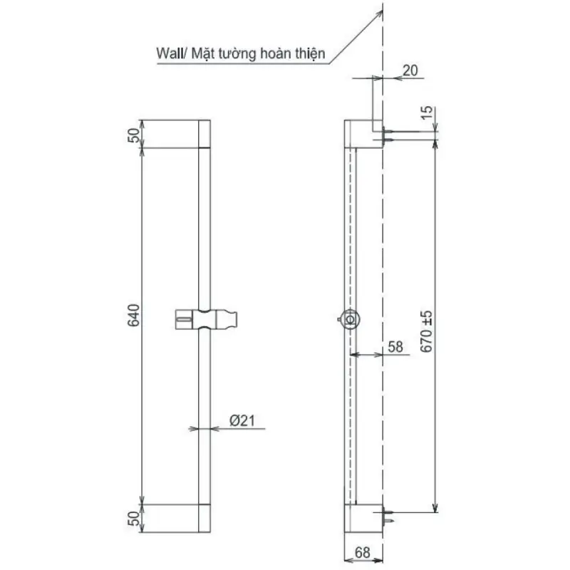 - Tùy chỉnh chiều cao không giới hạn: Thiết kế thanh trượt cho phép người dùng nâng hoặc hạ tay sen đến vị trí mong muốn chỉ bằng một thao tác trượt nhẹ nhàng, phù hợp cho cả người lớn và trẻ em.