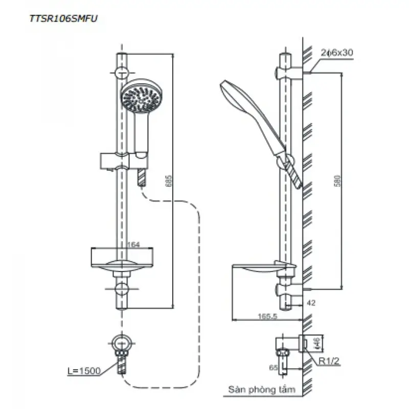 Thông Số Kỹ Thuật Chi Tiết Của Thanh Trượt Sen Tắm Toto TTSR106SMFU: