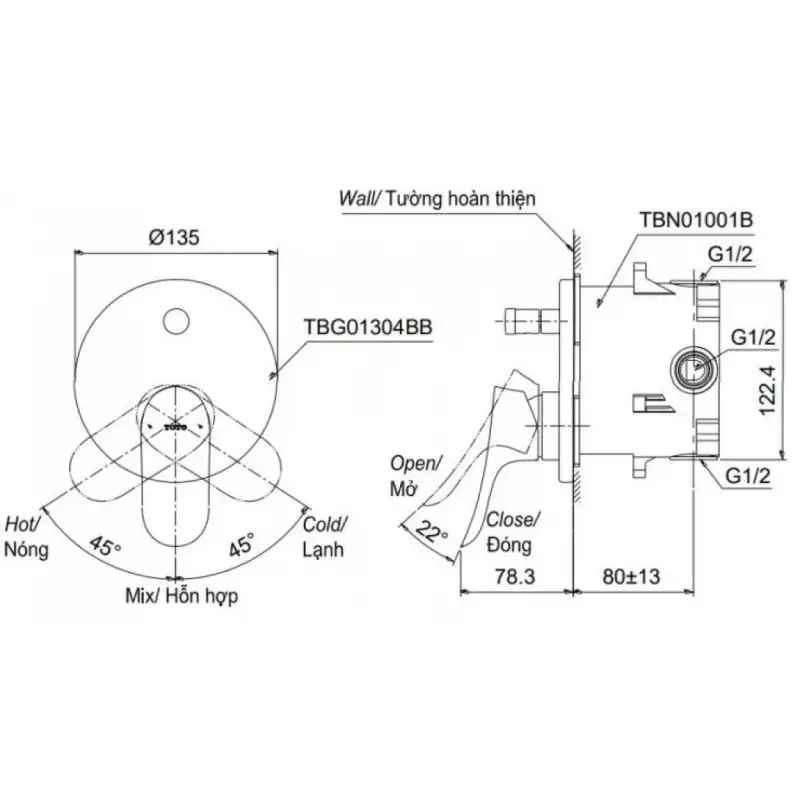 Thông Số Kỹ Thuật Chi Tiết Của Van Điều Chỉnh Nhiệt Độ Toto TBG01304BB#MBL/TBN01001B: