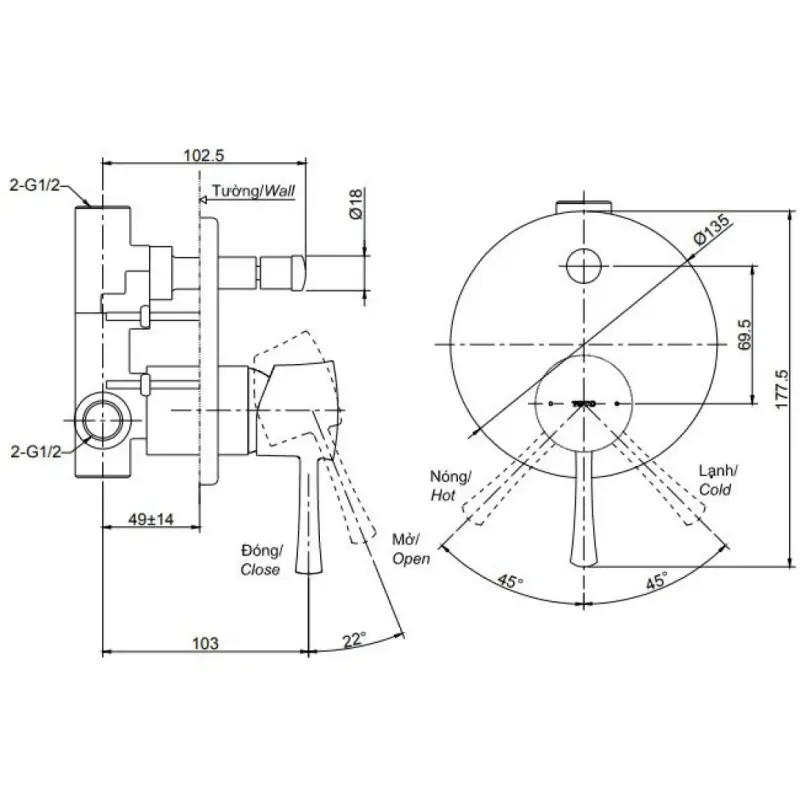 - Lắp đặt: Âm tường.