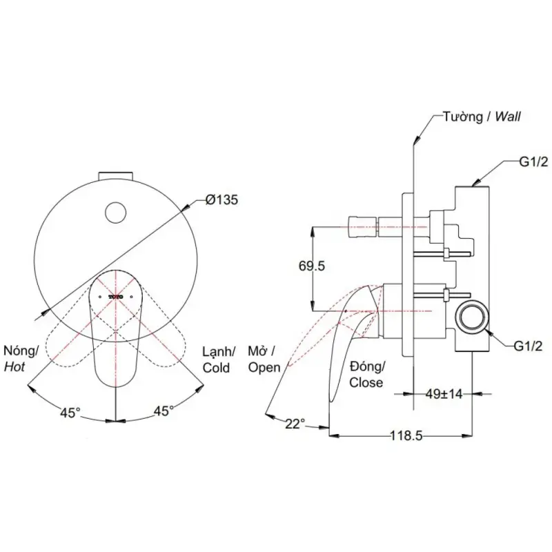 - Lắp đặt: Âm tường.