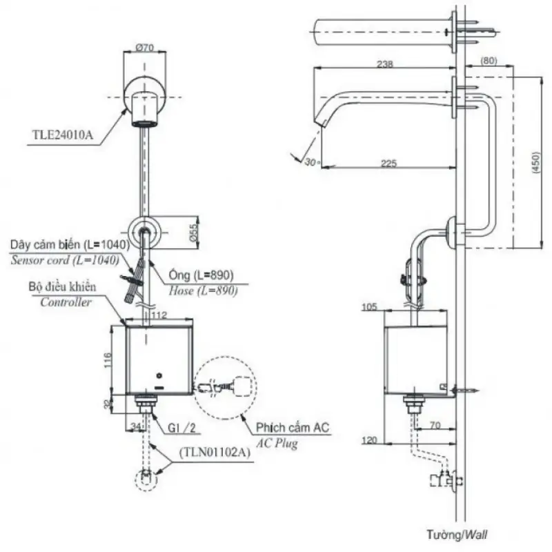 Thông Số Kỹ Thuật Chi Tiết Của Vòi Cảm Ứng Toto TLE24010V/TLE01502A1/TLN01102A: