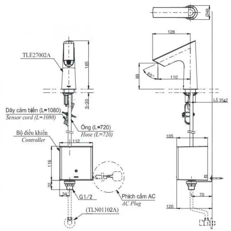 Thông Số Kỹ Thuật Chi Tiết Của Vòi Cảm Ứng Toto TLE27002V/TLE04502V/TLN01102A: