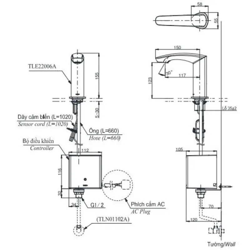 Thông Số Kỹ Thuật Chi Tiết Của Vòi Lavabo Cảm Ứng Toto TLE22006V: