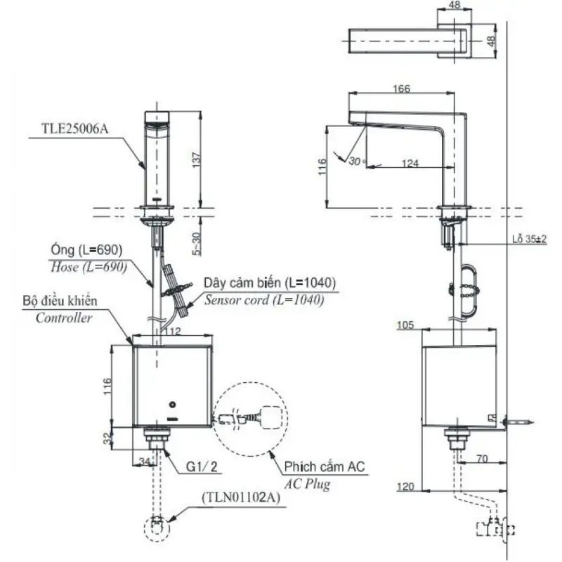 Hướng Dẫn Lắp Đặt Vòi Cảm Ứng TLE25006V Toto Gắn Chậu:
