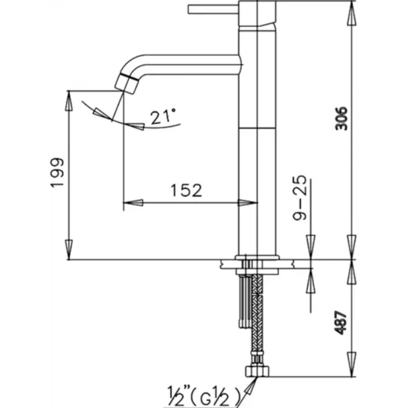 - Thiết kế chiều cao chuyên dụng: Thân vòi được thiết kế cao vượt trội để đầu vòi có thể vươn qua thành của các loại chậu rửa đặt nổi (vessel sink). Đây là đặc điểm kỹ thuật quan trọng giúp vòi tương thích với chậu dương bàn, điều mà các loại vòi lạnh thân thấp truyền thống không thể thực hiện được.