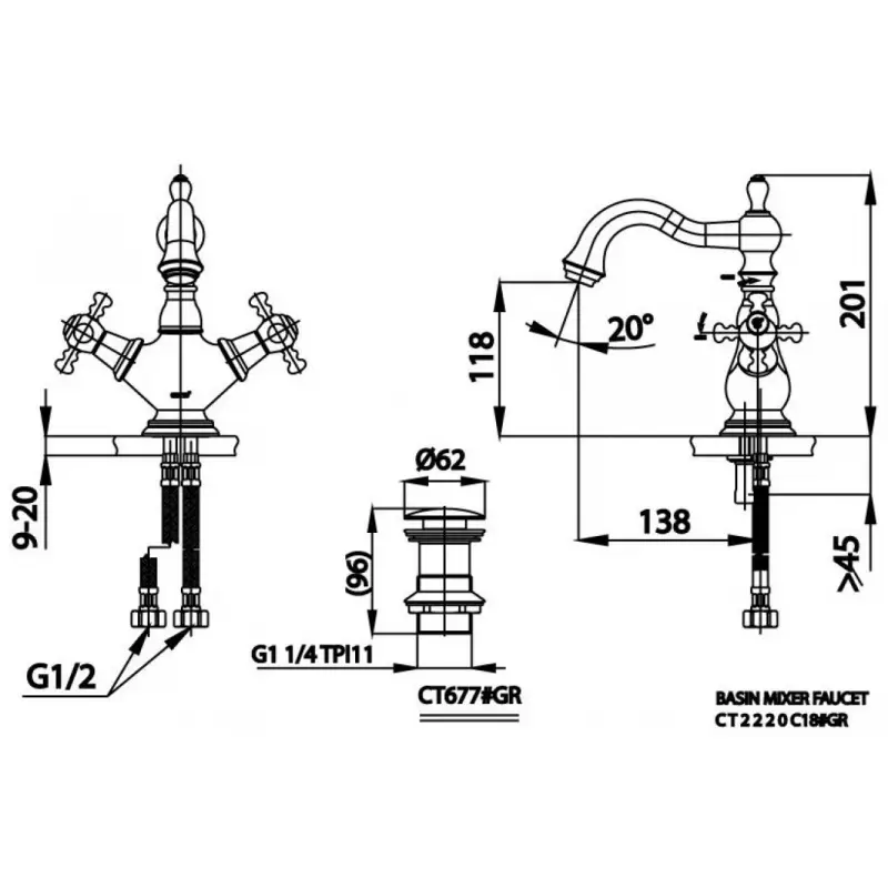 Thông Số Kỹ Thuật Chi Tiết Của Vòi Lavabo Cotto CT2220C18#GR: