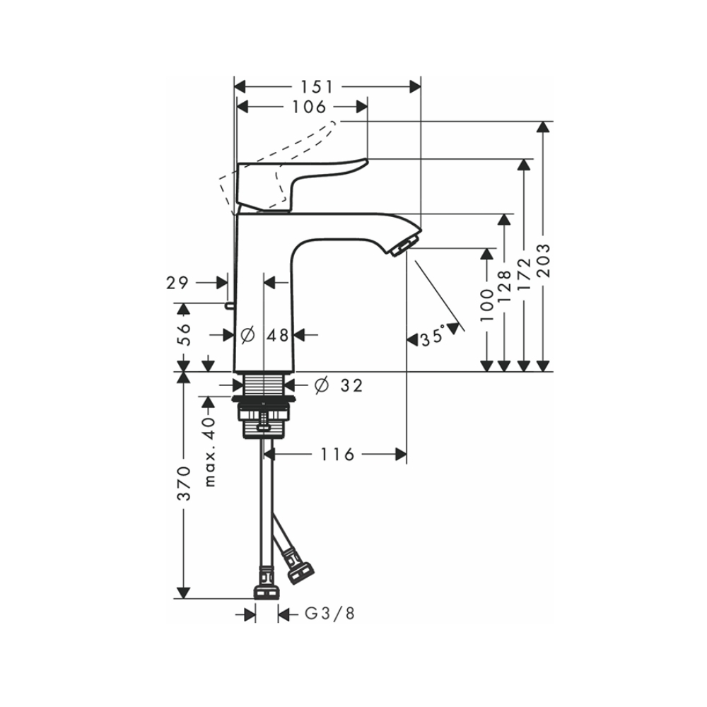 Bao gồm: Vòi chậu một tay gạt, bộ xả