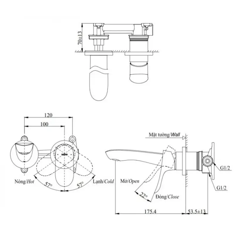 - Thiết Kế Âm Tường Tối Giản, Tạo Điểm Nhấn Kiến Trúc Độc Đáo: Toàn bộ củ, van trộn và đường ống được giấu gọn gàng bên trong tường, chỉ để lộ ra cần gạt và đầu vòi. Thiết kế này loại bỏ mọi chi tiết thừa trên mặt bàn, mang lại vẻ ngoài tối giản, hiện đại và tạo ra một điểm nhấn kiến trúc tinh tế cho khu vực chậu rửa.