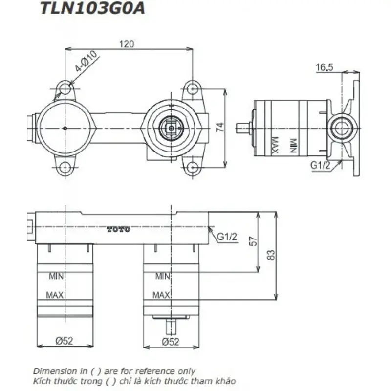 Vòi lavabo Toto TLG13307A/TLN103G0A nóng lạnh âm tường