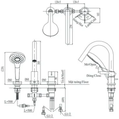 - Lắp đặt: Gắn thành bồn tắm 3 lỗ.