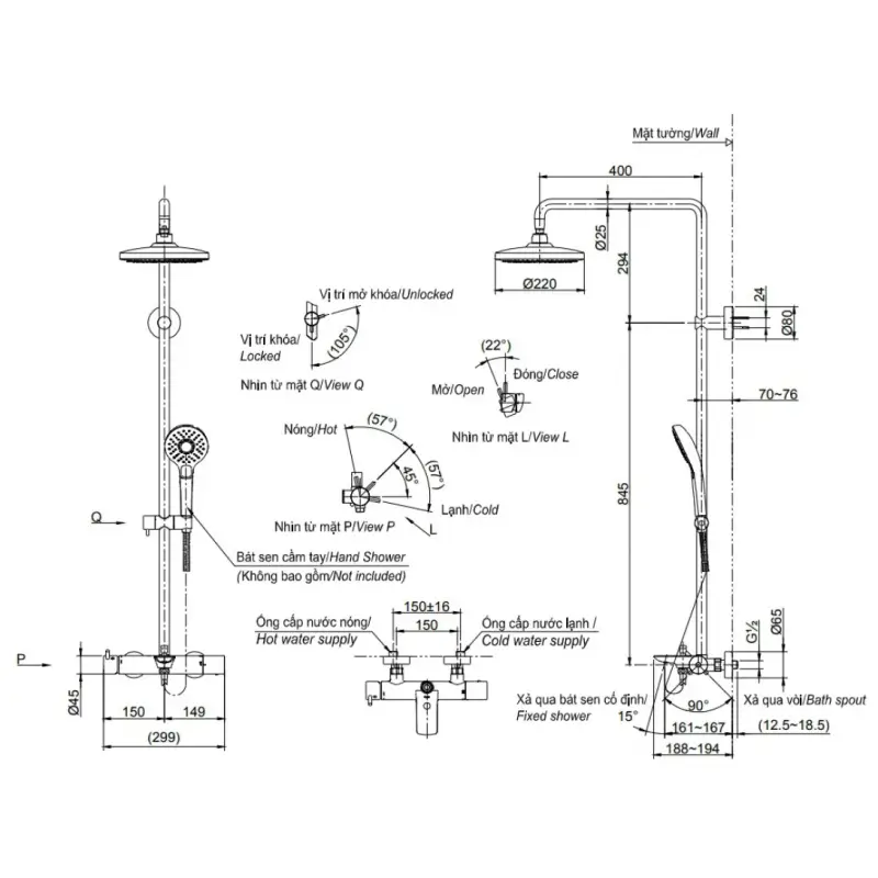 Vòi sen cây TOTO TBW01301B nóng lạnh