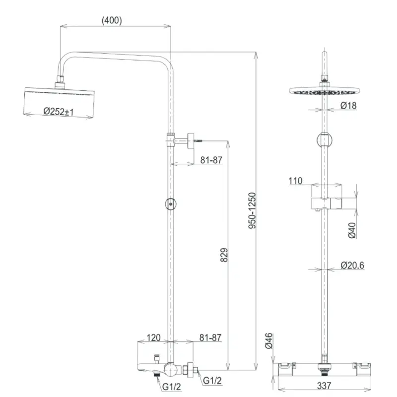 - Kích thước: 252mm (Xem chi tiết ở phần hướng dẫn lắp đặt)