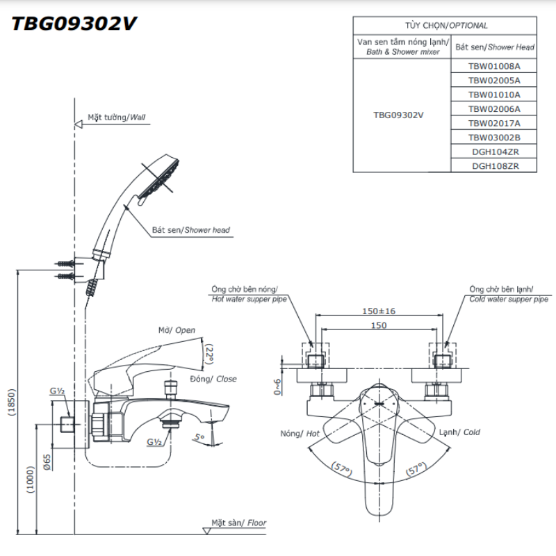 Thông Số Kỹ Thuật Chi Tiết Của Vòi Sen Tắm Toto TBG09302VA/TBW02005V: