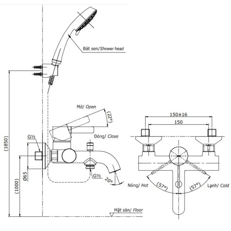 Vòi sen tắm TOTO TBG11302VA/TBW02006V nóng lạnh