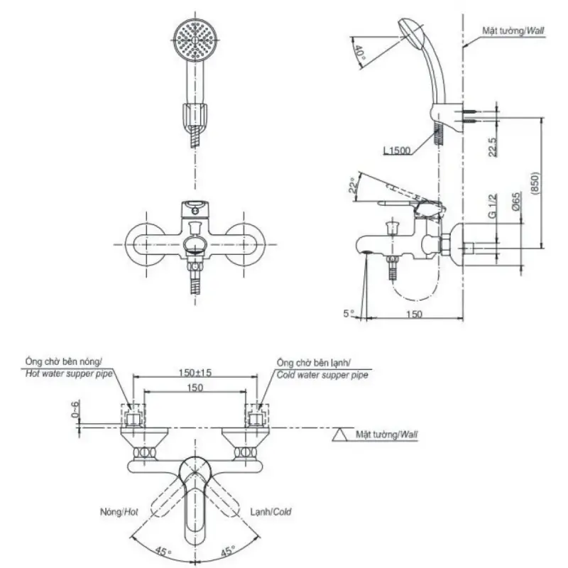 - Lắp đặt: Gắn tường.