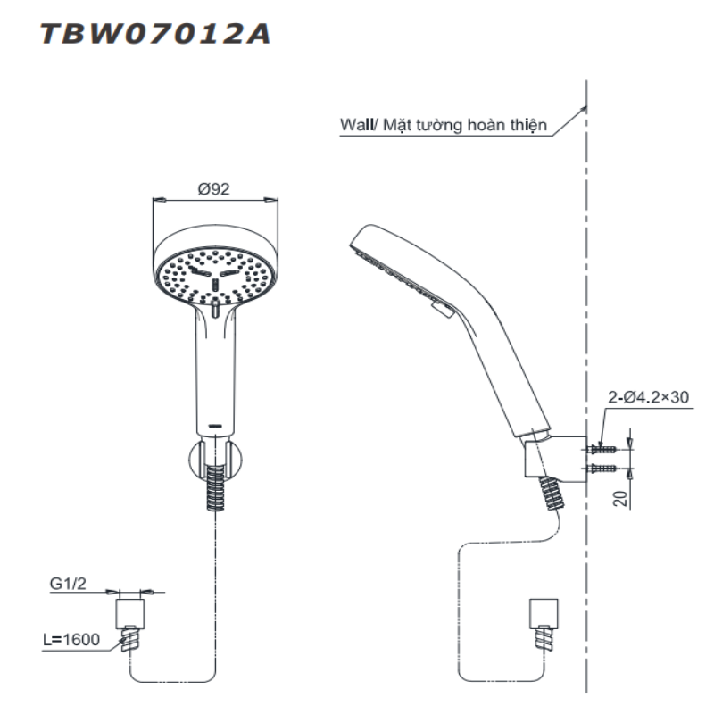 Thông Số Kỹ Thuật Chi Tiết Của Vòi Sen Toto TBS01302V/TBW07012A: