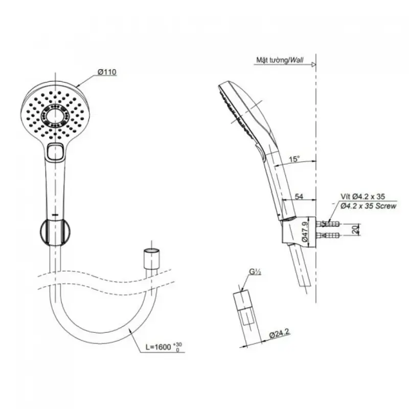 - Lắp đặt: Gắn tường.