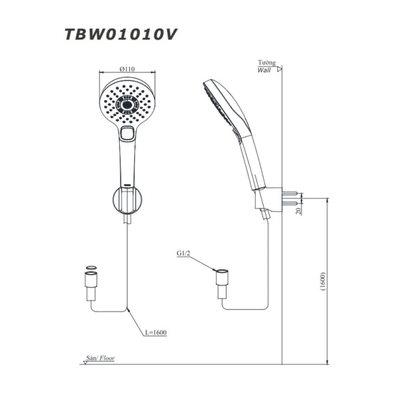 Thông Số Kỹ Thuật Chi Tiết Của Vòi Sen Toto TBV10400V/TBW01010V: