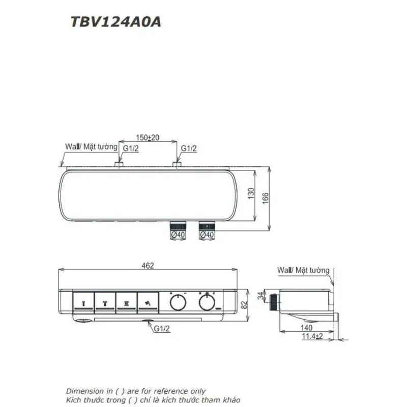 - Lắp đặt: Gắn tường.