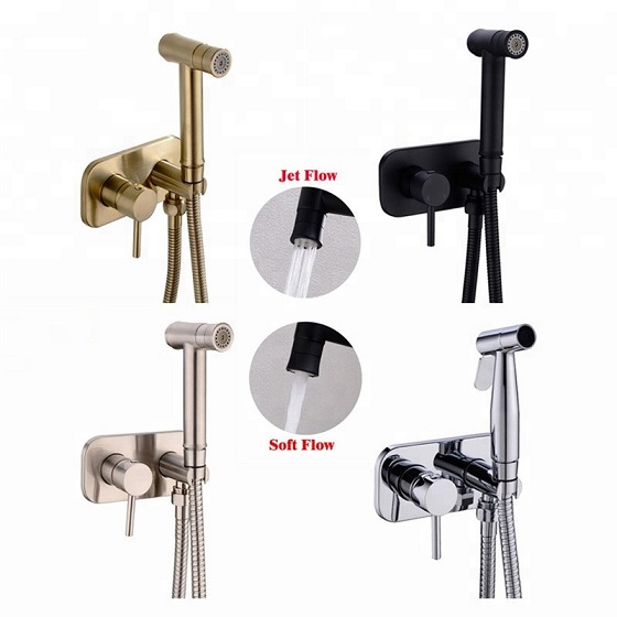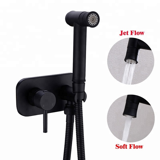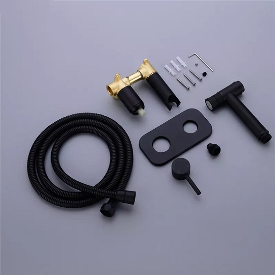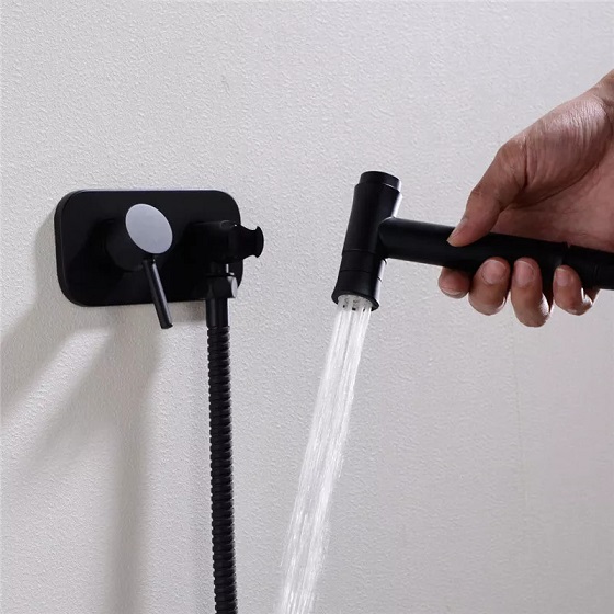 Vòi xịt vệ sinh nóng lạnh màu đen âm tường