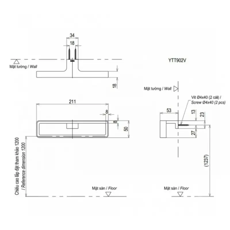 - Kích thước: 211×53×50 mm(Xem chi tiết xem ở phần hướng dẫn lắp đặt).