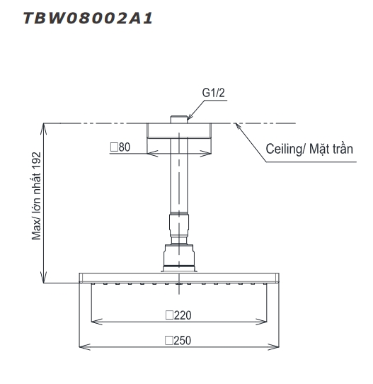 Bát sen tắm gắn trần Toto TBW08002A1