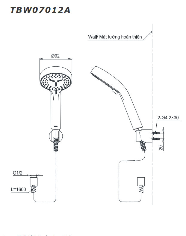 Lưu ý: Bao gồm gác sen, không bao gồm cút nối tường