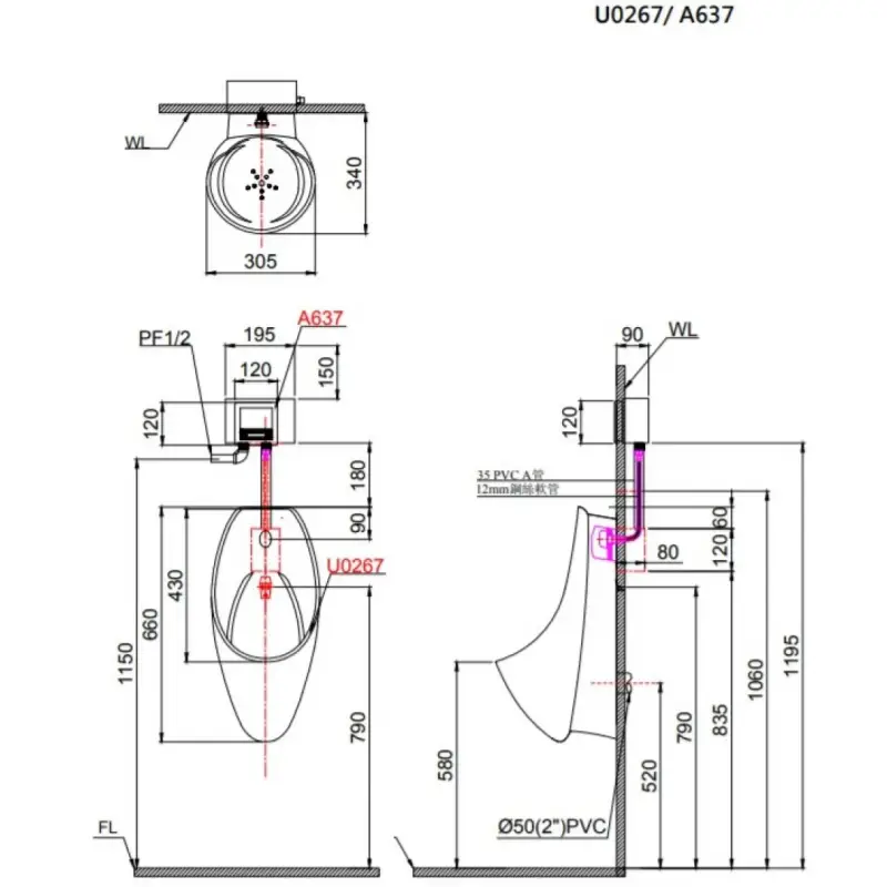 Thông Số Kỹ Thuật Chi Tiết Của Bệ Tiểu Nam Caesar U0267: