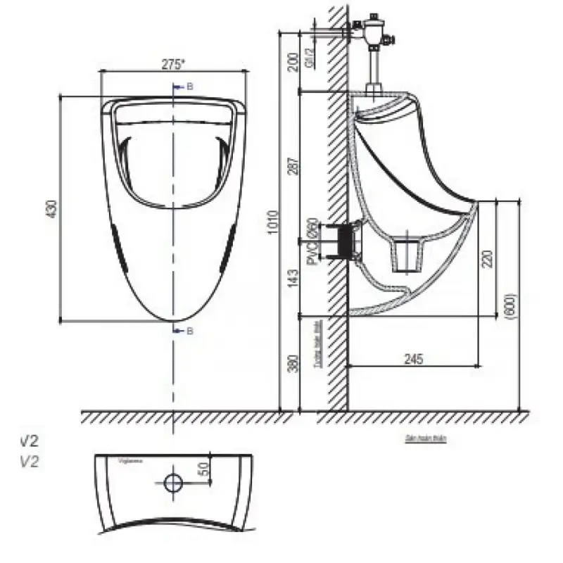 Hướng Dẫn Lắp Đặt Bồn Tiểu Nam Kháng Khuẩn Viglacera TT3