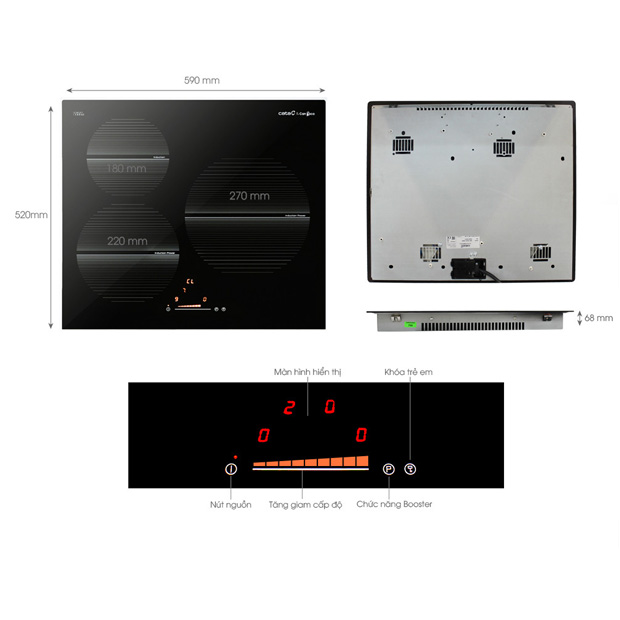 1 vùng nấu ø220 – Công suất : 2.3 kW ( Max 3.0 kW )