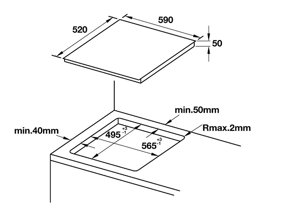 Mẫu bếp từ 04 vùng nấu, lắp đặt âm mặt đá