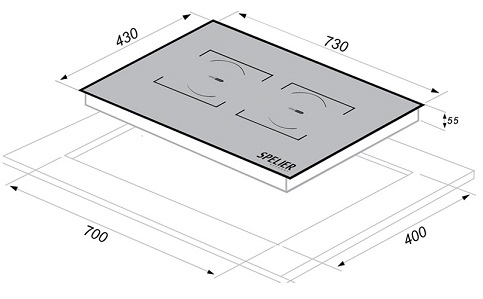 Kích thước bếp (DxRxC): 730 x 430 x 55 mm