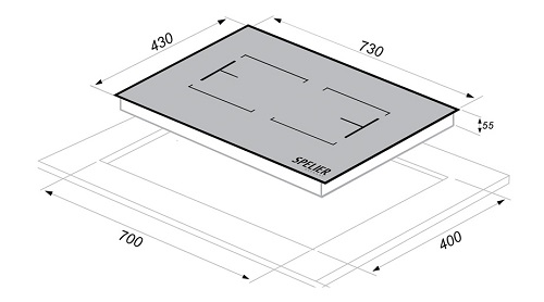 Kích thước bếp (DxRxC): 730 x 430 x 55 mm
