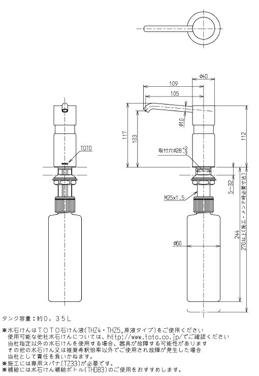 Bình dầu rửa bát, bình đựng xà bông rửa tay nội địa Nhật TOTO TLK05202J