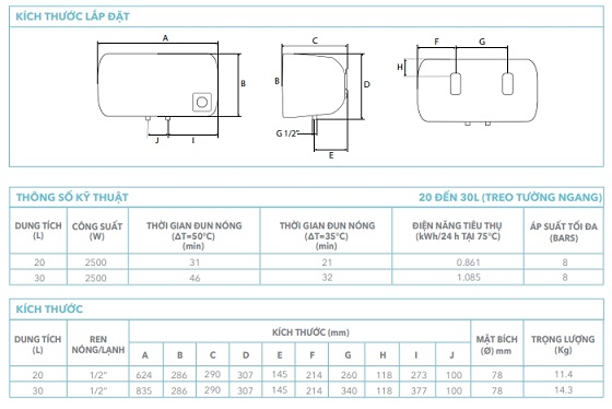 Điện năng tiêu tốn duy trì 75°C trong 24h: 0.861 KWH/24h at 75°C