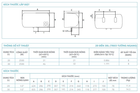 Điện năng tiêu tốn duy trì 75°C trong 24h: 1.0861 KWH/24h at 75°C
