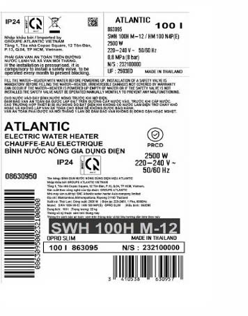Điện năng tiêu tốn duy trì 65°C trong 24h: 1.83KWWh