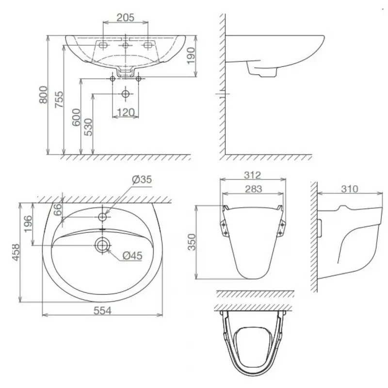 Bộ Chậu Rửa Lavabo Viglacera BS409/BS502 Treo Tường Kèm Chân Ngắn: Đỉnh Cao Thiết Kế, Tiết Kiệm Vượt Trội Cho Không Gian Tắm Sang Trọng