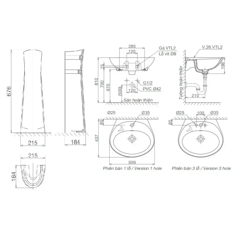 - VTL2: Thân chậu treo tường.